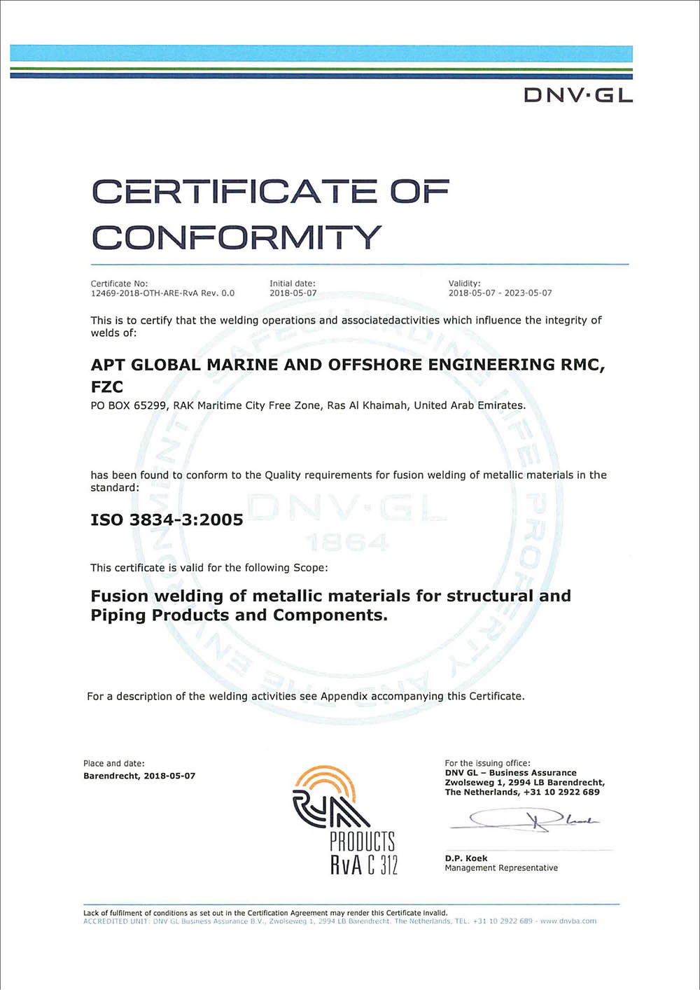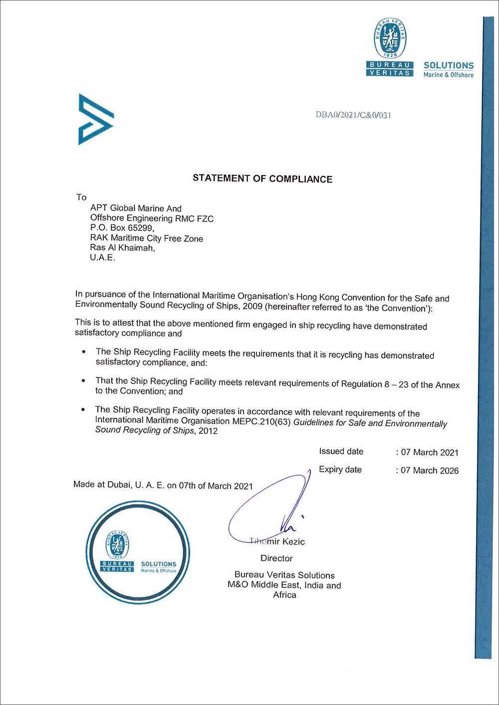Our commitment to client satisfaction and quality goes hand in hand with an equal emphasis on Environment, Health & Safety as confirmed by DNV certifications ISO 9001:2015, ISO 14001:2015 and ISO 45001:2018 as well as GL certification for our yards.