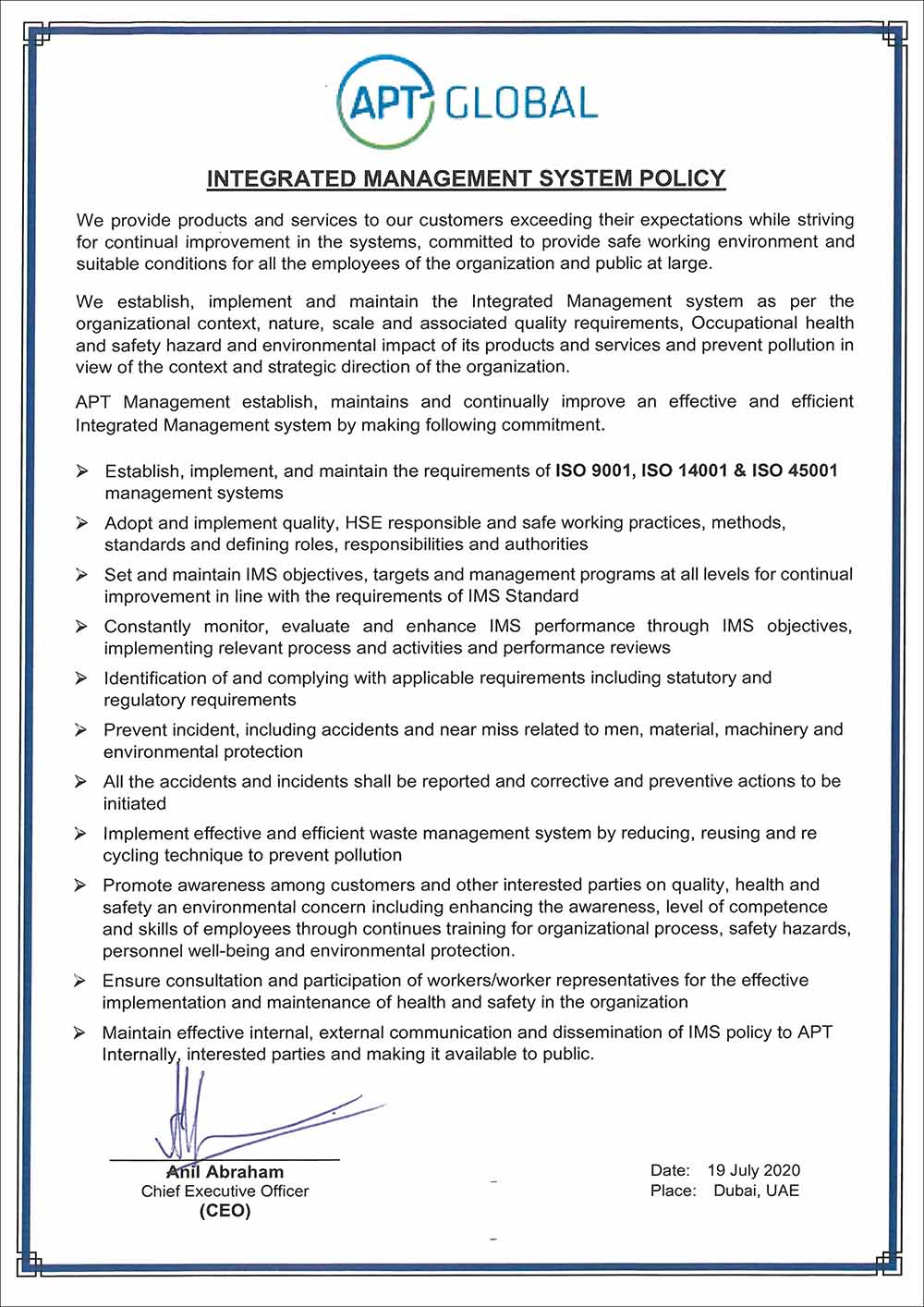 The energy landscape has witnessed a significant shift and continues to evolve at a rapid pace, with committed corporations and countries driving the world towards clean power generation. The UAE is steadfast in its commitment towards reducing the carbon footprint and we at APT have partnered with a well-established European company to install hydrogen fueled generators for our power requirements. By converting from conventional diesel generators to hydrogen powered generators, APT is making a positive commitment towards sustainable solutions and leading the industry to embrace green energy solutions in the Middle East. The implementation of hydrogen power generation will the first of its kind in the country. |